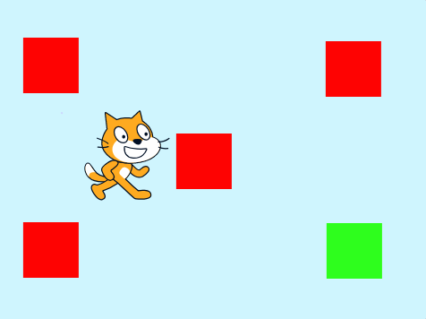 程序说明:小猫在玩游戏,要在不碰到红色正方形色块的情况下走到绿色的正方形。