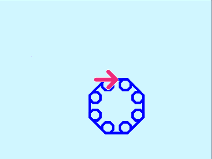 (2)大的多边形的边长为50,线条粗细5,线条颜色蓝色;