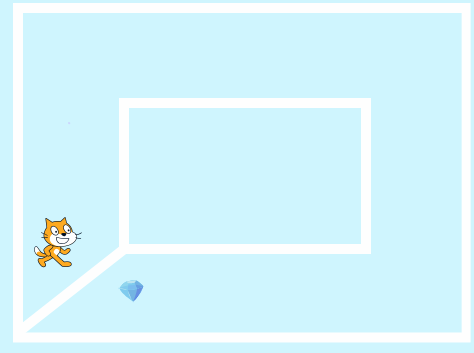 (1)如上图所示,将小猫和宝石放置在迷宫左下角位置,中间有白墙分隔,调整小猫和宝石的大小;