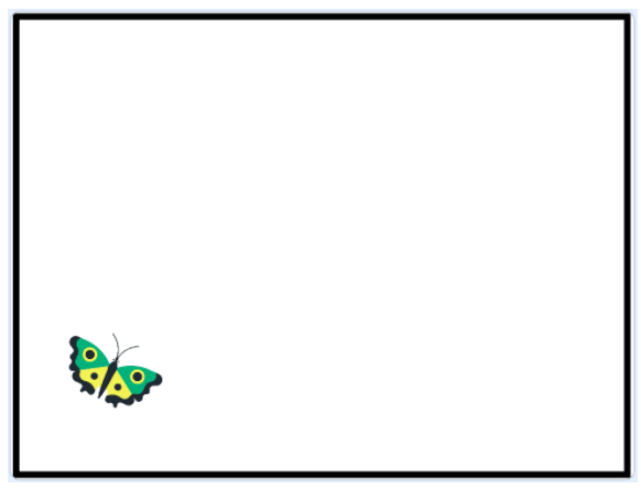 (2)如果触碰到黑色边框,就会发出声音。碰到黑色边框后自动转向,并自动运动,向矩形方框内部的白色区域运动。蝴蝶永远都飞不出黑色边框。如此循环,蝴蝶的运动区域不会超出矩形方框。