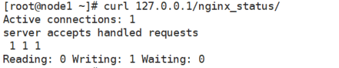 [root@node1 ~]# vim /etc/nginx/conf.d/default.conf //添加nginx状态模块location /nginx_status {stub_status on;access_log off;}