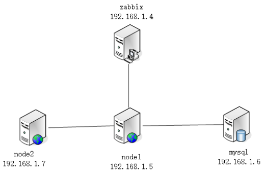 实验目标:根据拓扑图配置监控node1和mysql,添加mysql监控模板,脚本报警等功能。