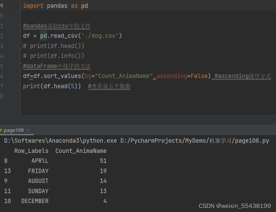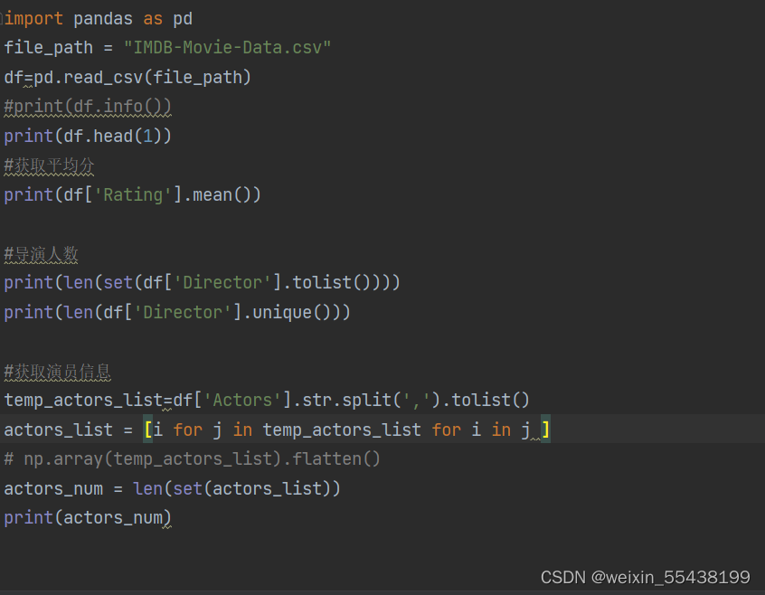 我们的这组数据存在csv中,我们直接使用pd. read_csv即可