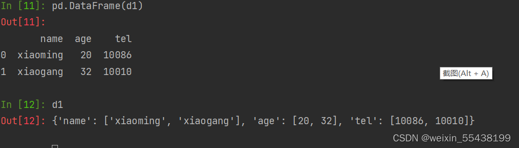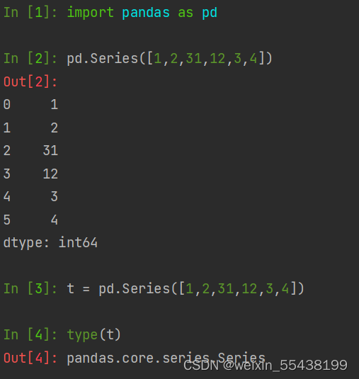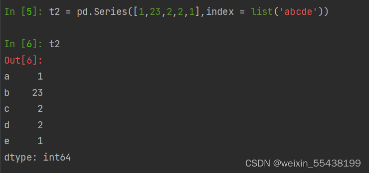 通过字典类型创建pandas之Series创建(字典的键变成了索引,字典的值就是对应的值)
