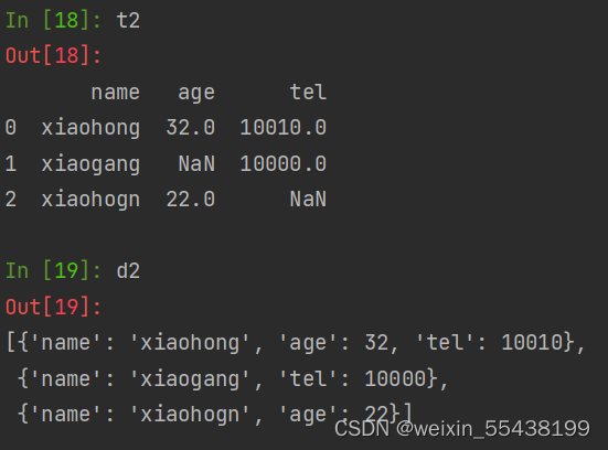 通过列表的形式创建DataFrame(缺失的数据会用NaN代替)