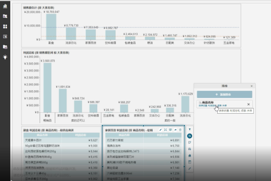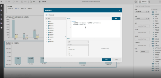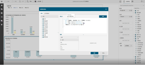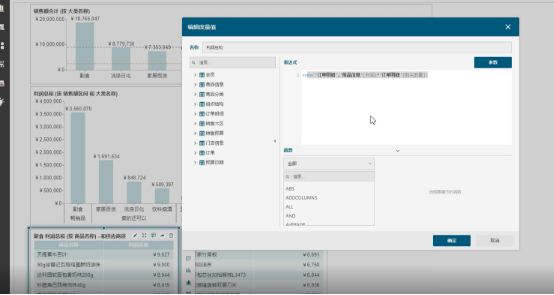 但当我们希望在仪表板中展示诸如总销售利润率时,就无法直接拖拽使用了,因为这类字段是无法直接通过拖拽自动聚合的业务逻辑,此时就需要一种更强的计算能力。