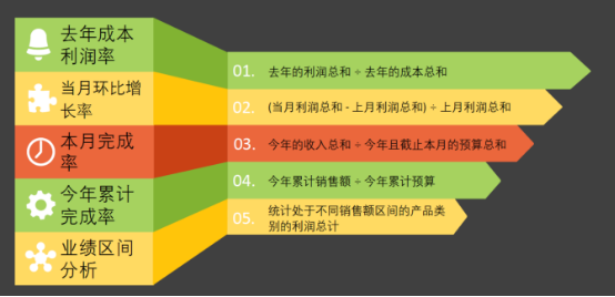 **成本利润率:Calculate(sum(利润) ÷sum(成本),year=去年)****环比增长率:(sum(当月利润) - sum(上月利润)) ÷ sum(上月利润)**