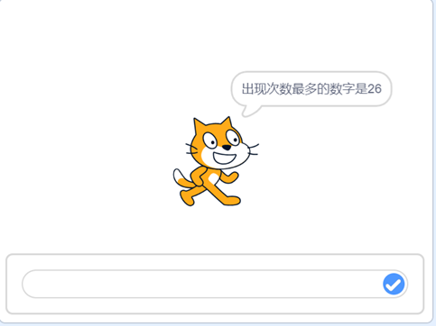 (3)找出其中出现次数最多的数字,小猫说“出现次数最多的数字是xxx”。如果有多个数字出现的次数相等,都是最多的,小猫说出最后一个。(例如:小猫说“出现次数最多的数字是26“)
