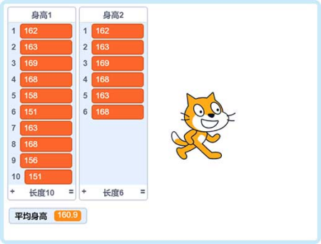 (1)点击绿旗,产生10个150-170的随机数,保存到列表“身高1”中;