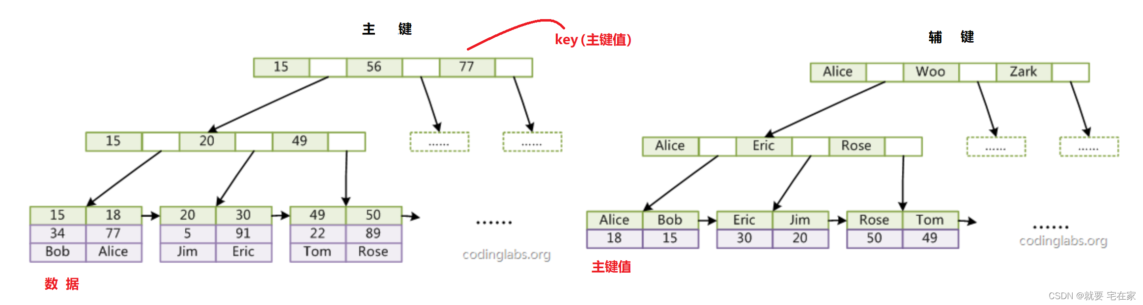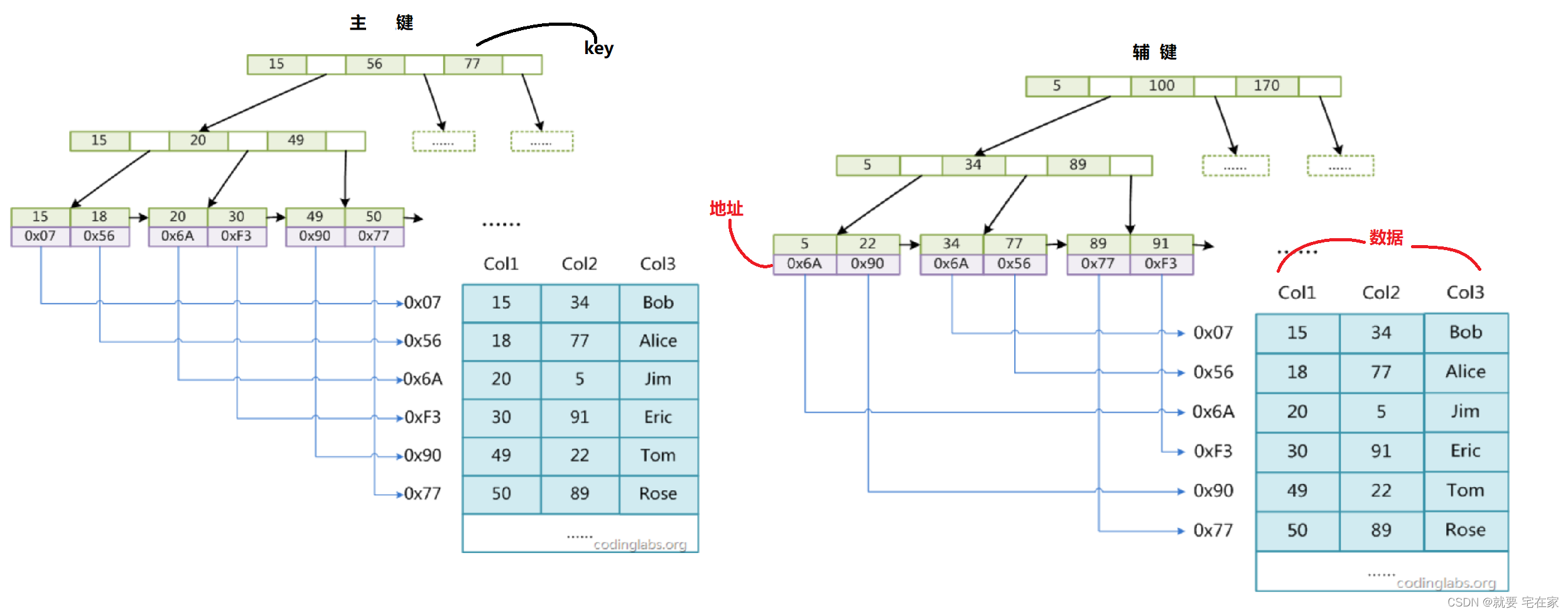 图示来源(有修改):CodingLabs - MySQL索引背后的数据结构及算法原理