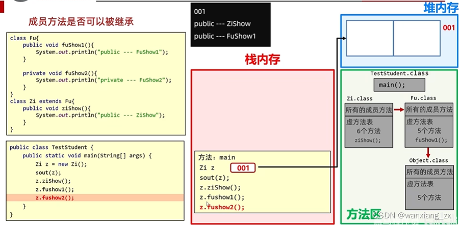 2. new一个子类时,在堆内存的空间实际上一部分放子类自己的东西,一部分放从父类继承下来的东西。