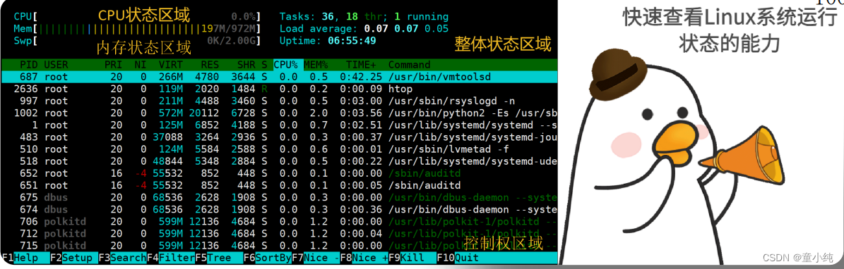 地基(底层)由一排排的文件柜组成,然有序,文件柜里放置 着“文件”—电脑中的文件。左上角,有一只胸前挂着421号牌的 小企鹅,它表示着PID (进程ID(Process ID) )为421的进程、它正在查看文件柜中的文件,这代表系统中正有一个进程在访问 文件系统。在右下角有一只小狗,它是看门狗(watchdog) 、这代表对文件系统的监控。