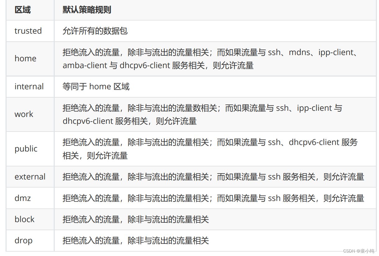 firewall-cmd --get-default-zone2、显示默认区域的所有规则