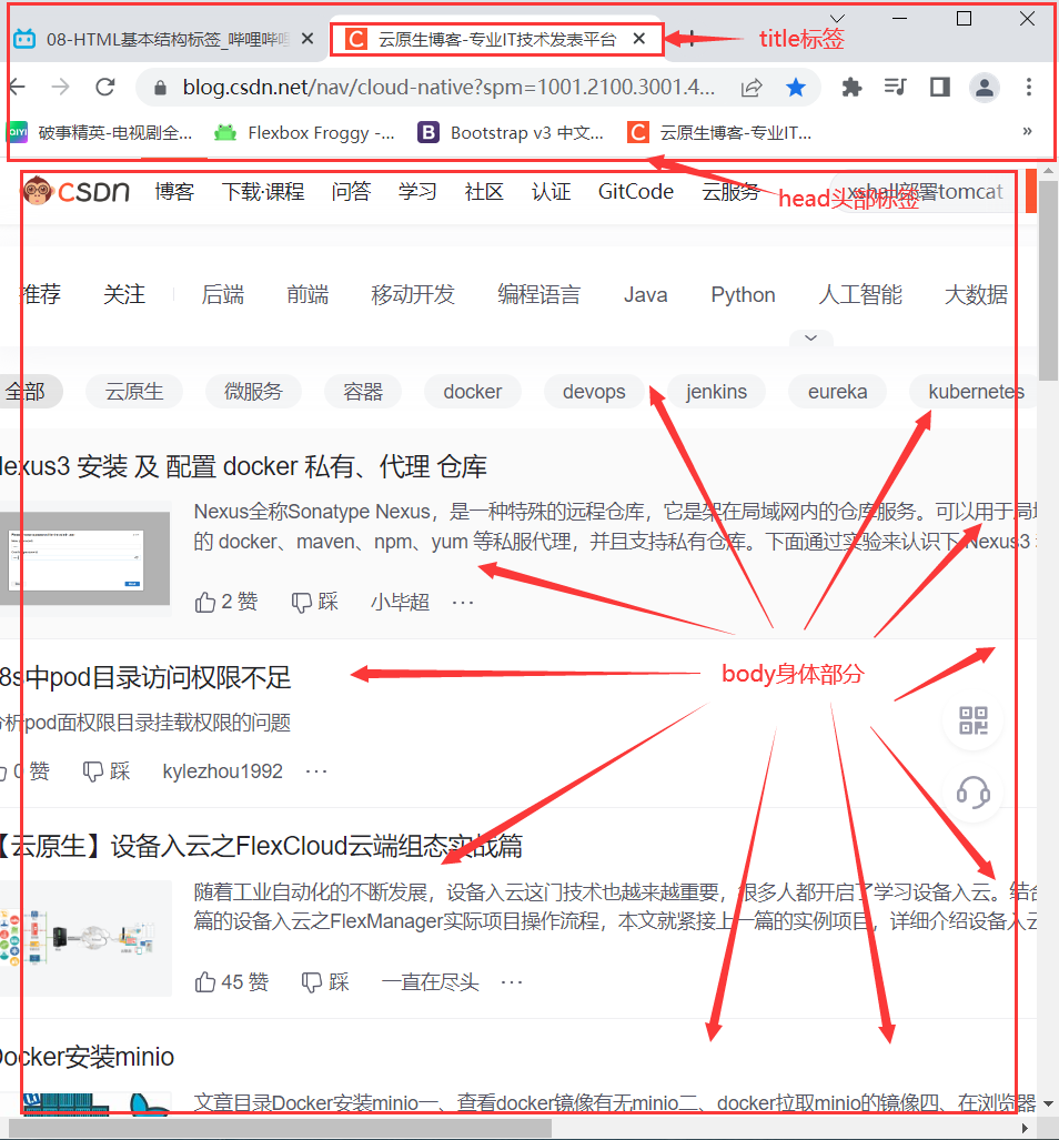 每一个网页都会有一个基本的结构标签(骨架标签),页面内容也是在这些基本标签上书写。