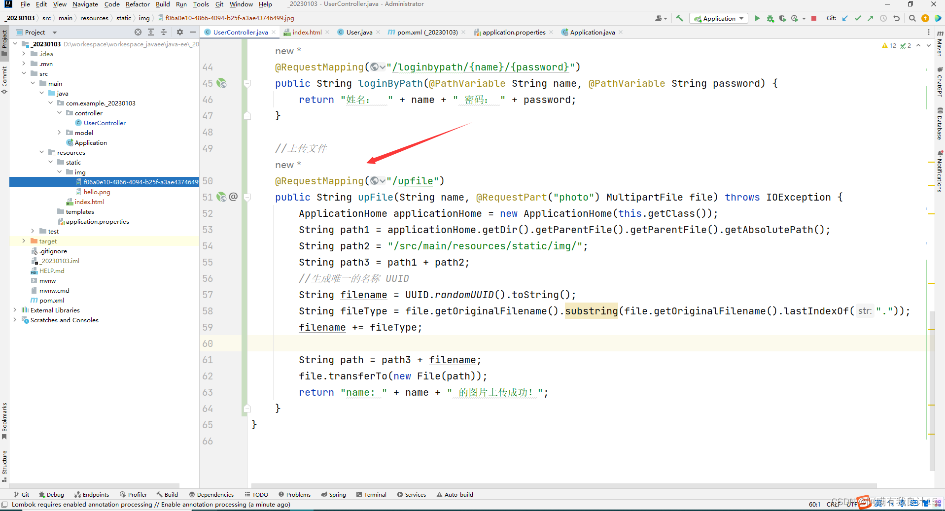 上传文件的路径最好放在application.properties中,方便后序修改。