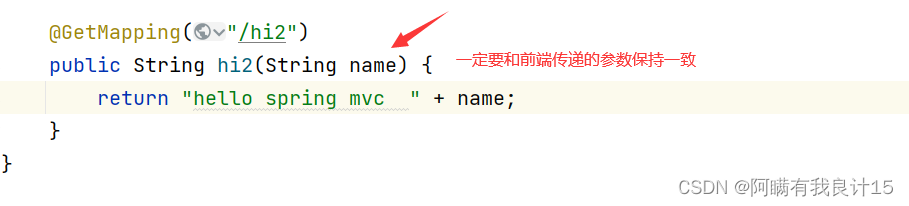 这种情况,我们就可以使⽤ @RequestParam 来重命名前后端的参数值.