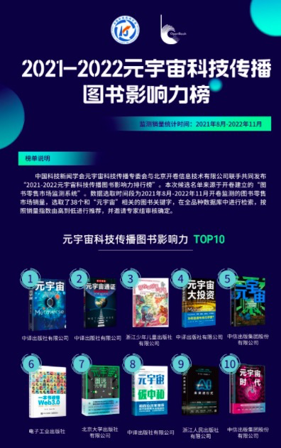 2021-2022元宇宙科技传播图书影响力榜发布,元宇宙产业委好书上榜