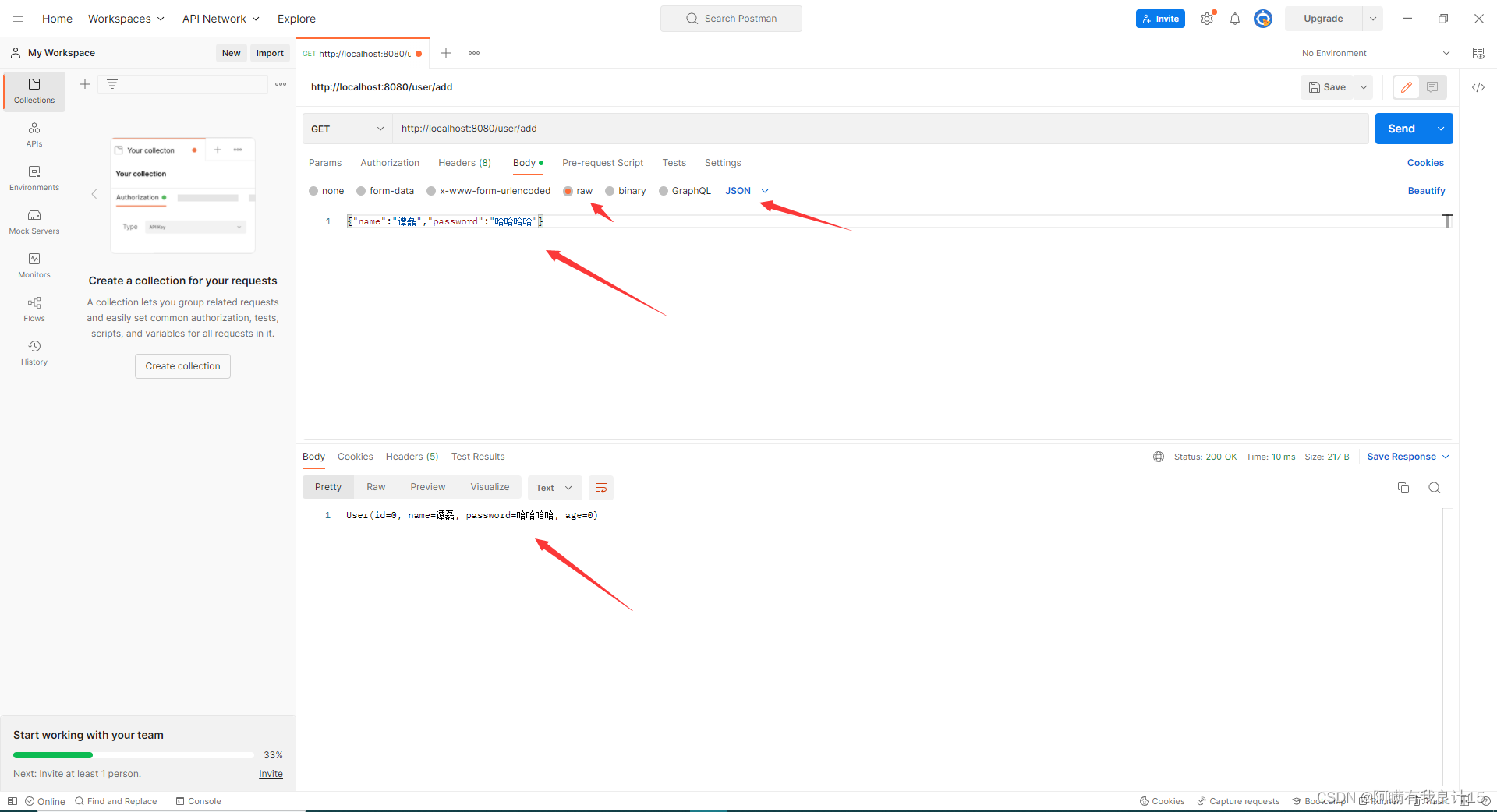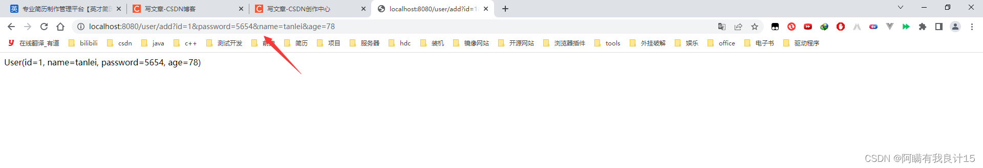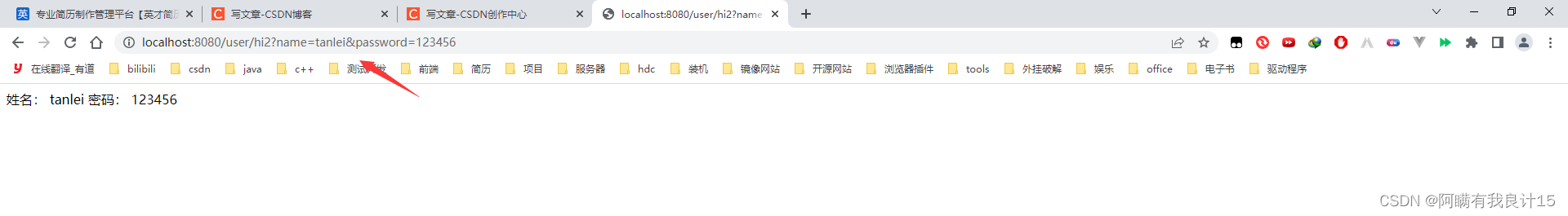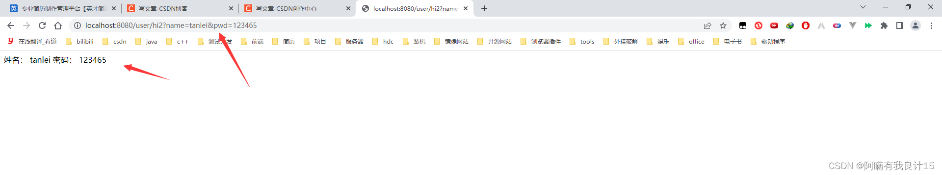 但是,如果我用json传递就不行了,name=null,password=null