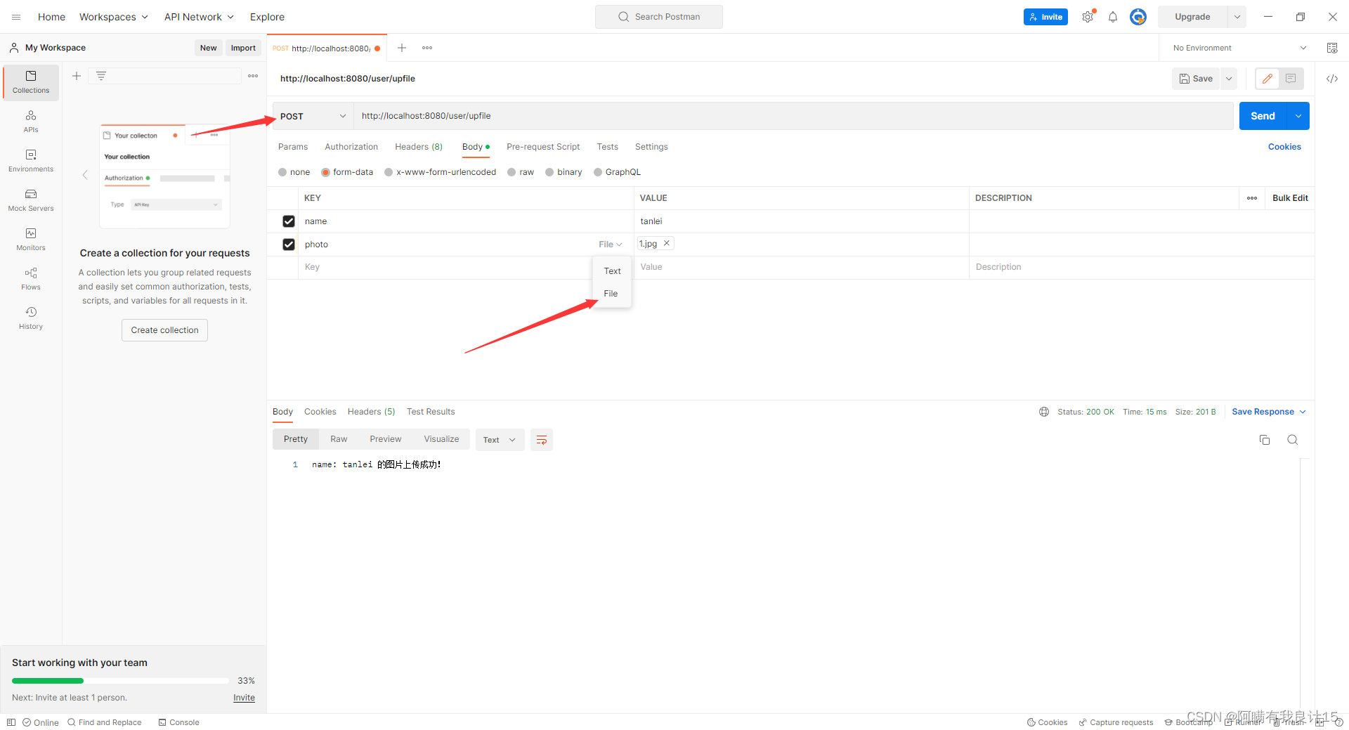 我们看看postman传递参数的方法有哪些?(用户可以通过文件,form表单,raw,binary等方式,将参数,传递给Java后端程序)