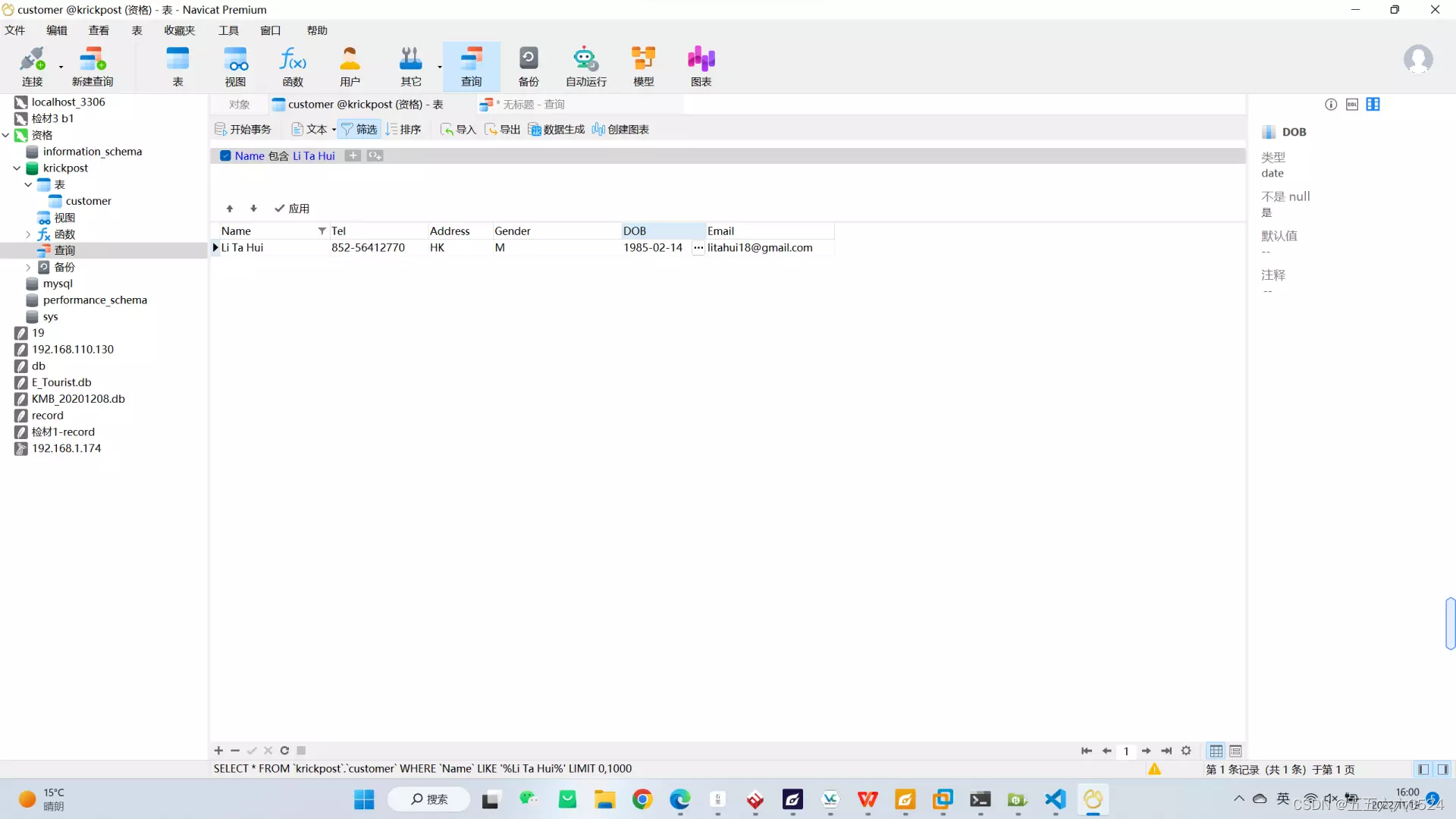 用navicat连接一下,然后筛选,找到对应的结果,那个subarea(分区)一列感觉不是灯柱编号,因为明显得到的这些数据对应着两个subarea编号,一个是2一个1,因此我认为名字上的CE1453才是灯柱编号