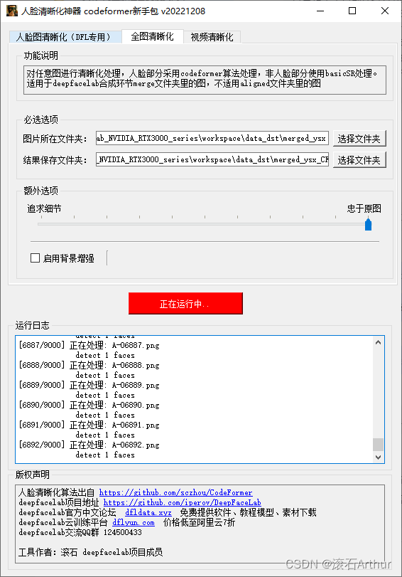 2. 关闭了codeformer里默认尺寸放大2倍的功能,改为默认1倍尺寸,保持dfl切好的图不会出现尺寸不匹配问题