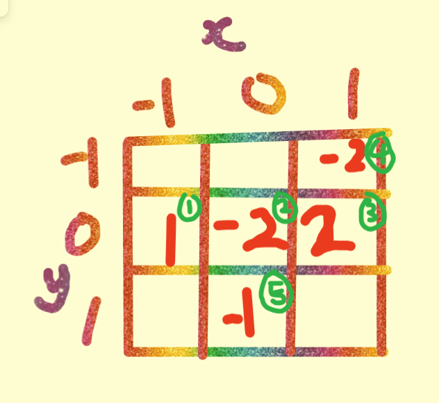 我们来模拟一下我自己造的一个样例(横向为x,竖向为y,方框内的数字为(x,y)的武力值,圈起来的数字为节点编号):