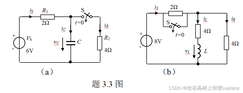 关于结论2,在0-的那一瞬间,因为没有储能,u_{C}=0,所以电容看作短路,i_{L}=0,所以电感看作开路。