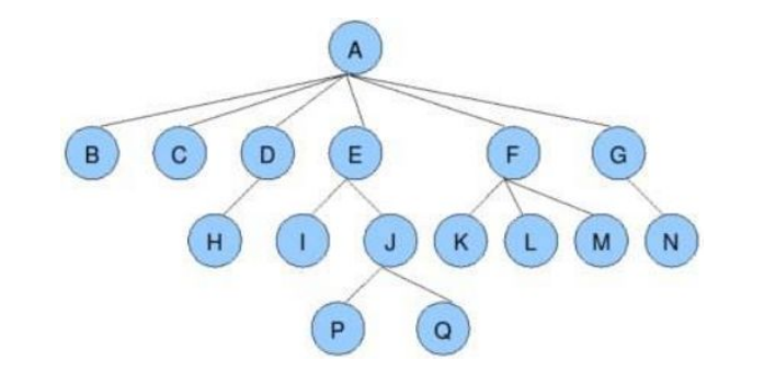 非终端节点或分支节点:度不为0的节点; 如上图:D、E、F、G...等节点为分支节点