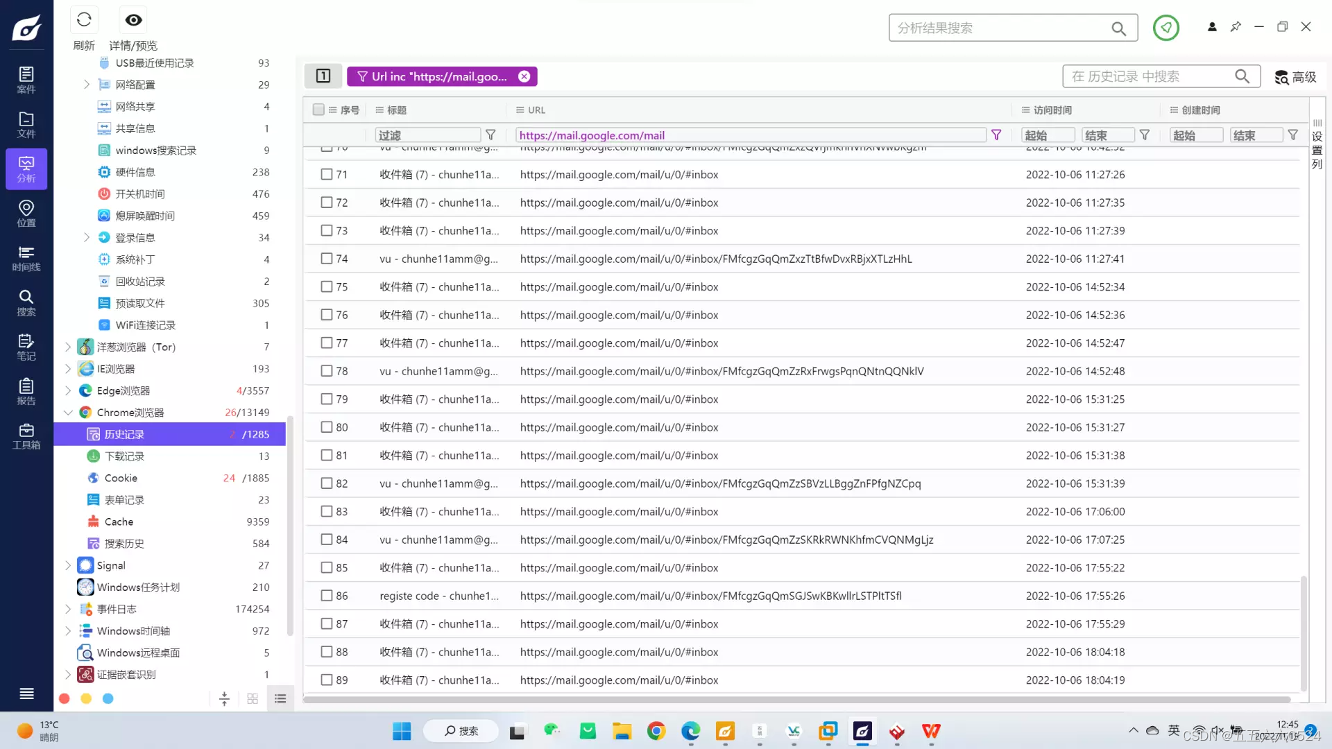 只有最后一行的1665497067是介于中间的,转换成时间戳是2022-10-11 22:04:27