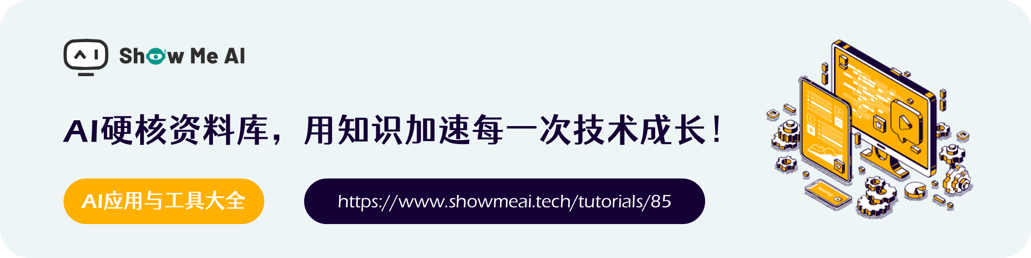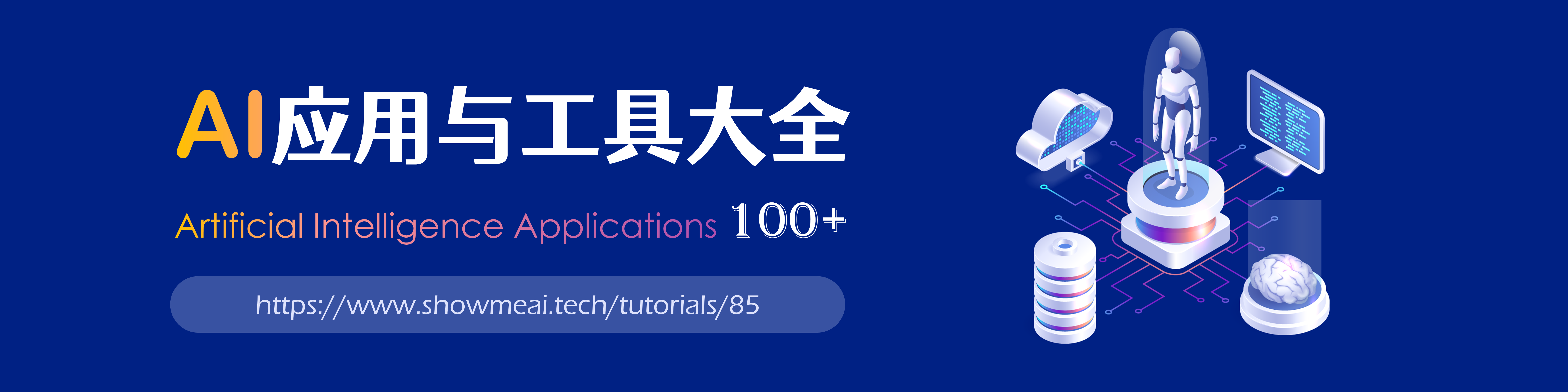 ShowMeAI 🎡AI应用与工具大全 页面,汇总了100+人工智能工具,包括个人、企业、行业、科研等4大应用场景,智能家居、增强现实AR、运动健康、聊天机器人、广告营销、教育、农业、无人机、自动驾驶、文本生成、图像生成等领域!是AI开发者和数字行业工作者的百宝箱!如有遗漏或推荐,欢迎联络留言!