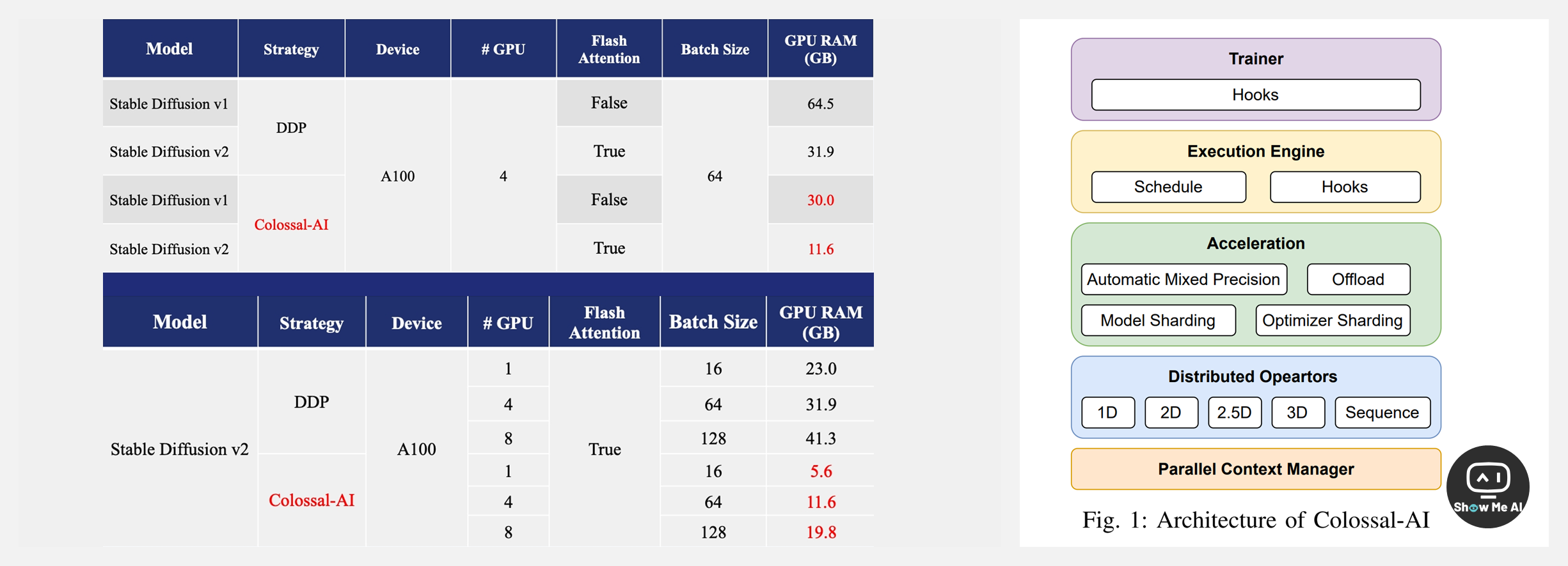 Colossal-AI 提供了一系列并行组件,目标是让分布式 AI 模型像构建普通的单 GPU 模型一样简单。项目提供的友好工具可以在几行代码内快速开始分布式训练和推理。