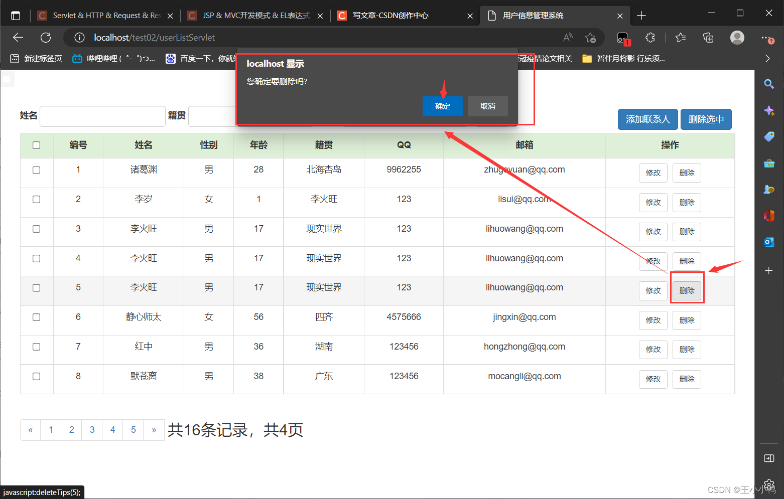 在list.jsp删除按钮添加一个方法,点击会有确认框