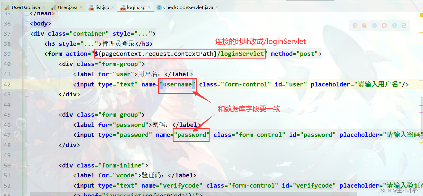 @WebServlet("/addUserServlet") public class AddUserServlet extends HttpServlet {protected void doPost(HttpServletRequest request, HttpServletResponse response) throws ServletException, IOException {//设置request编码request.setCharacterEncoding("utf-8");//调用UserService完成添加UserService service = new UserServiceImpl();//获取参数String name = request.getParameter("name");String gender = request.getParameter("gender");int age = Integer.parseInt(request.getParameter("age"));String adress = request.getParameter("address");String qq = request.getParameter("qq");String email = request.getParameter("email");//添加到User里User user = new User();user.setName(name);user.setGender(gender);user.setAge(age);user.setAddress(adress);user.setQq(qq);user.setEmail(email); // 调用UserService层User user1 = service.addUser(user);// 将list存入request域request.setAttribute("user1",user);//转发到request.getRequestDispatcher("/index.jsp").forward(request,response); 3.调转到重新查询的servlet // response.sendRedirect(request.getContextPath()+"/userListServlet");}protected void doGet(HttpServletRequest request, HttpServletResponse response) throws ServletException, IOException {this.doPost(request, response);} }后来加入了工具类,效率提高