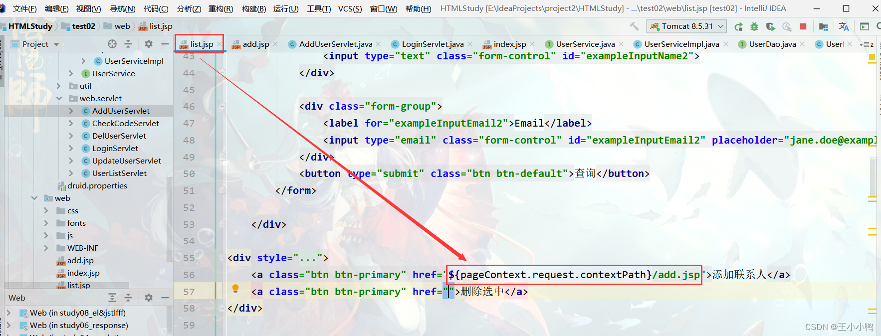 在list.jsp中添加联系人按钮路径跳转到add.jsp