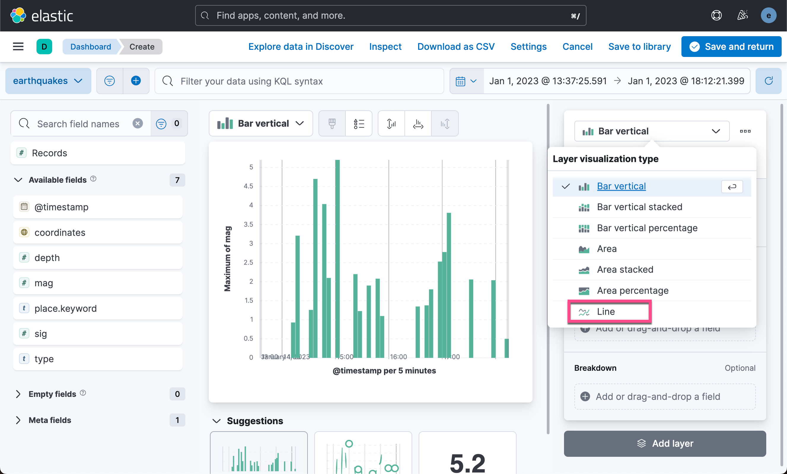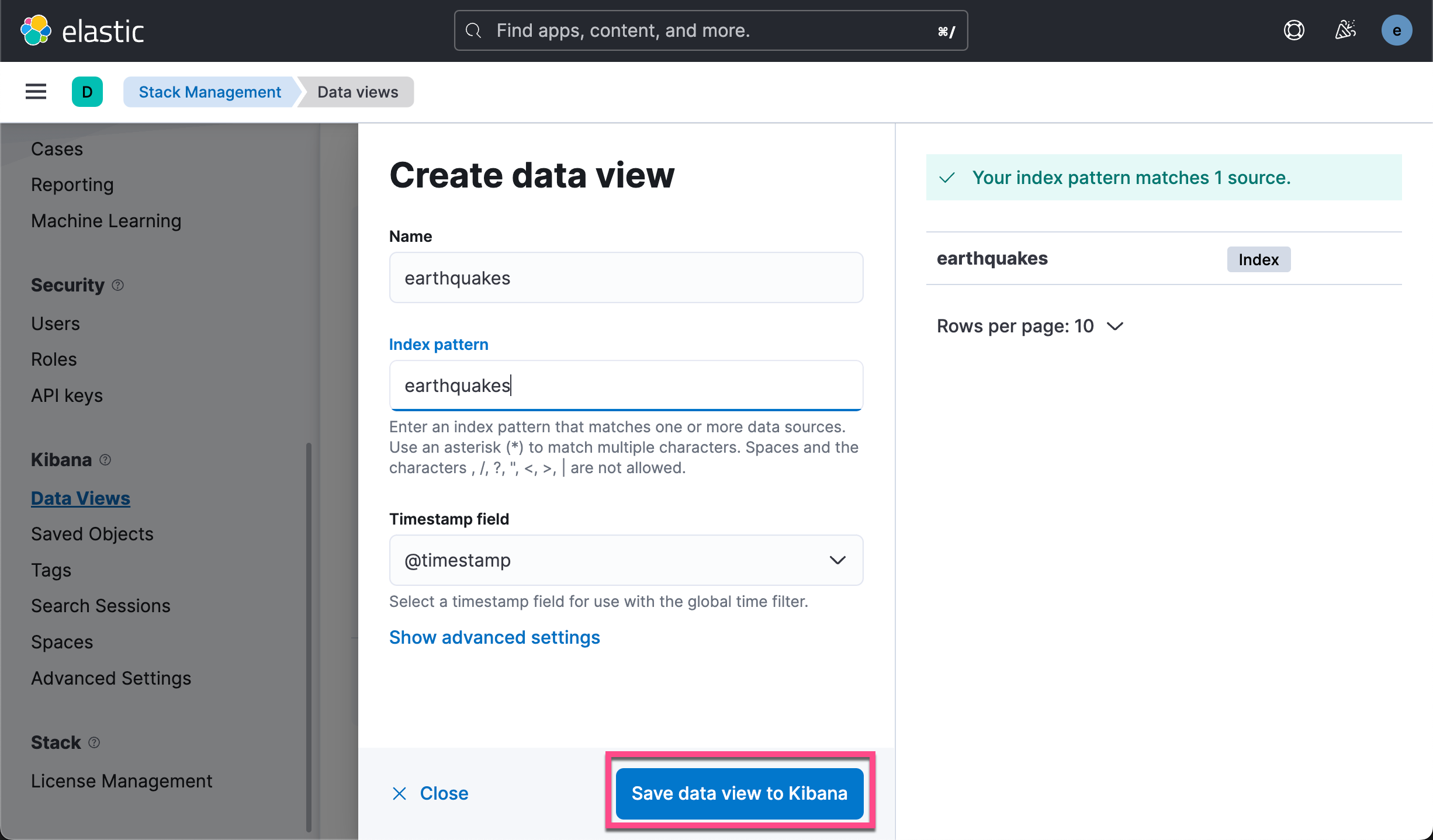 在进行可视化之前,我们需要为数据创建一个 data view。我们按照如下的步骤来进行: