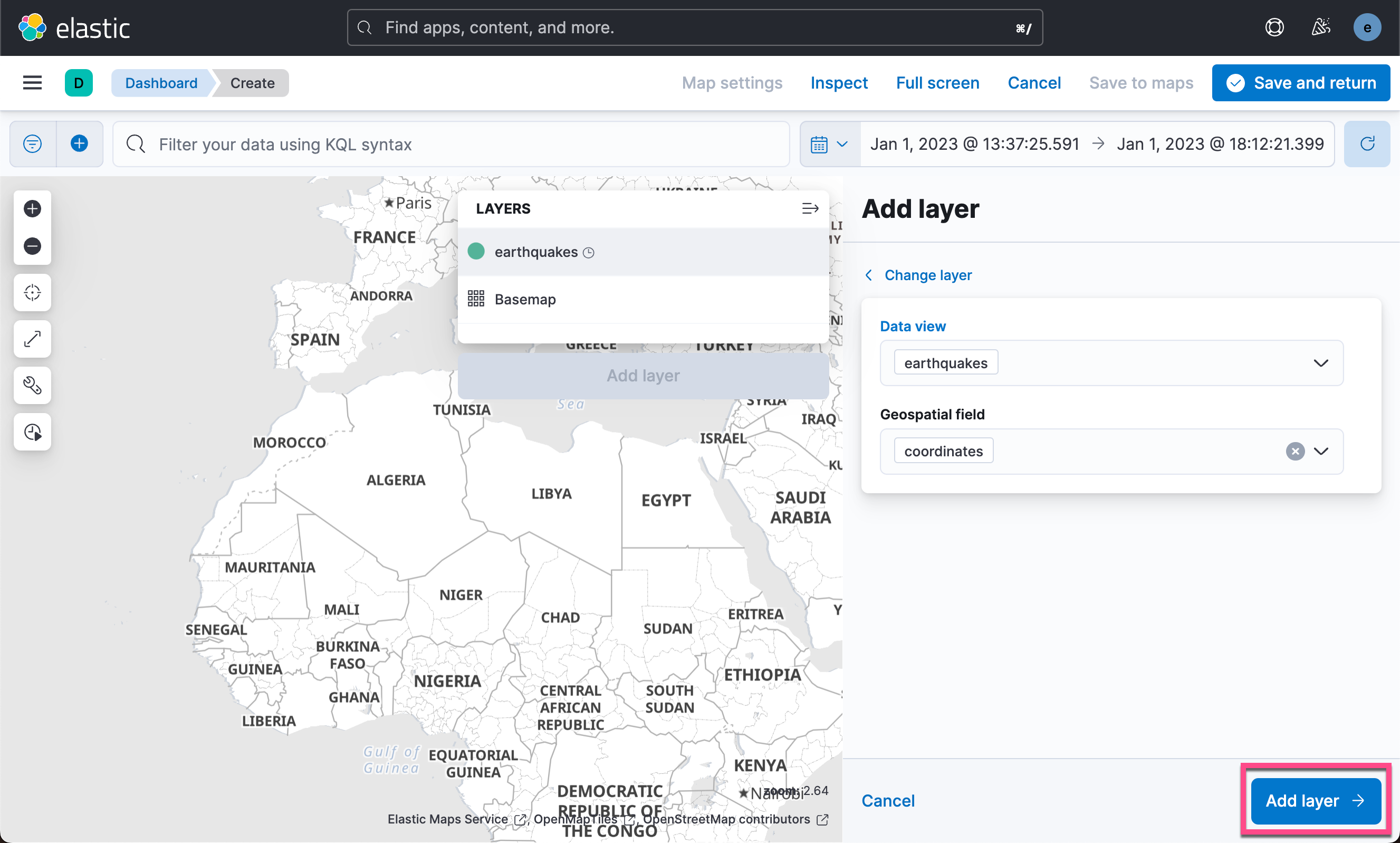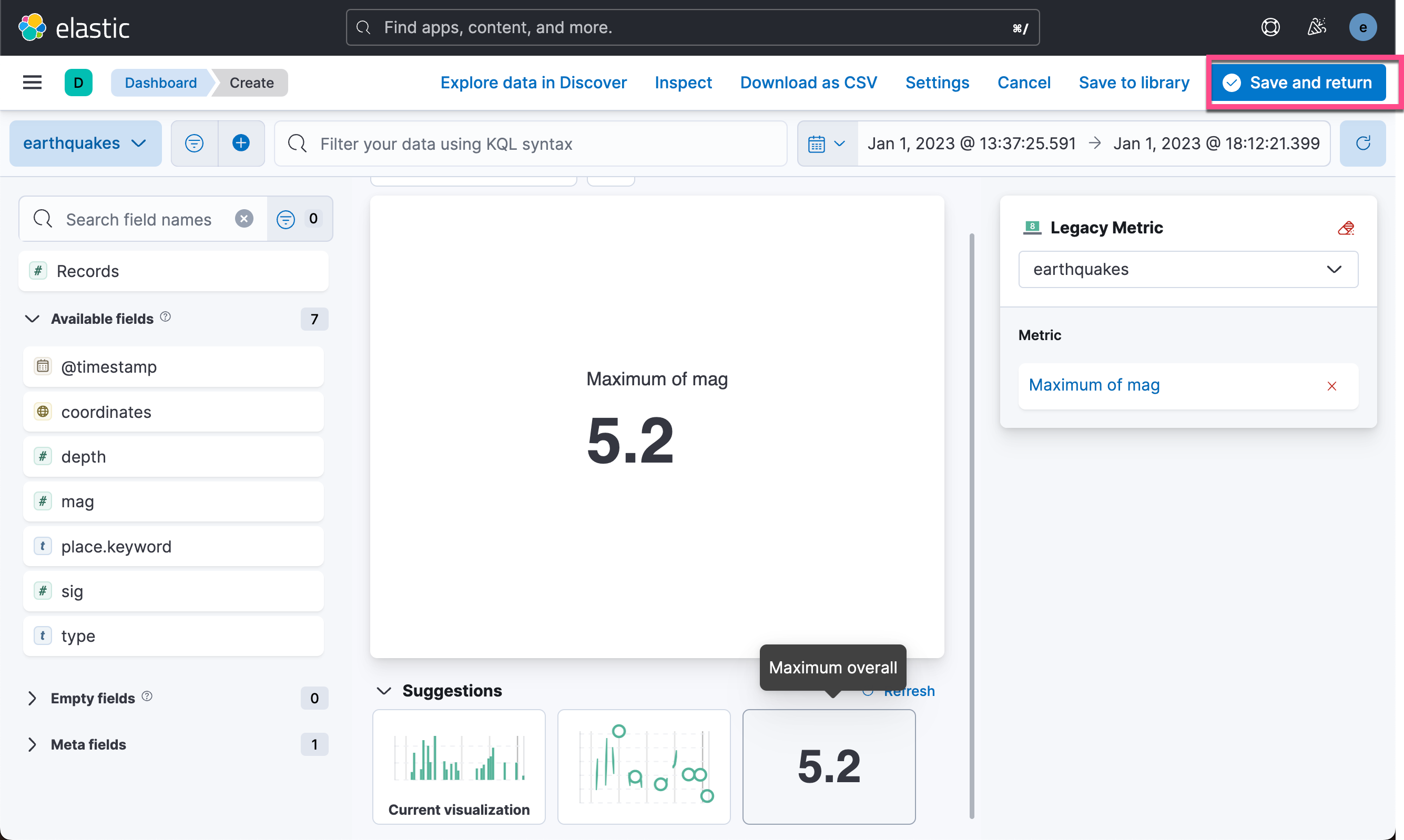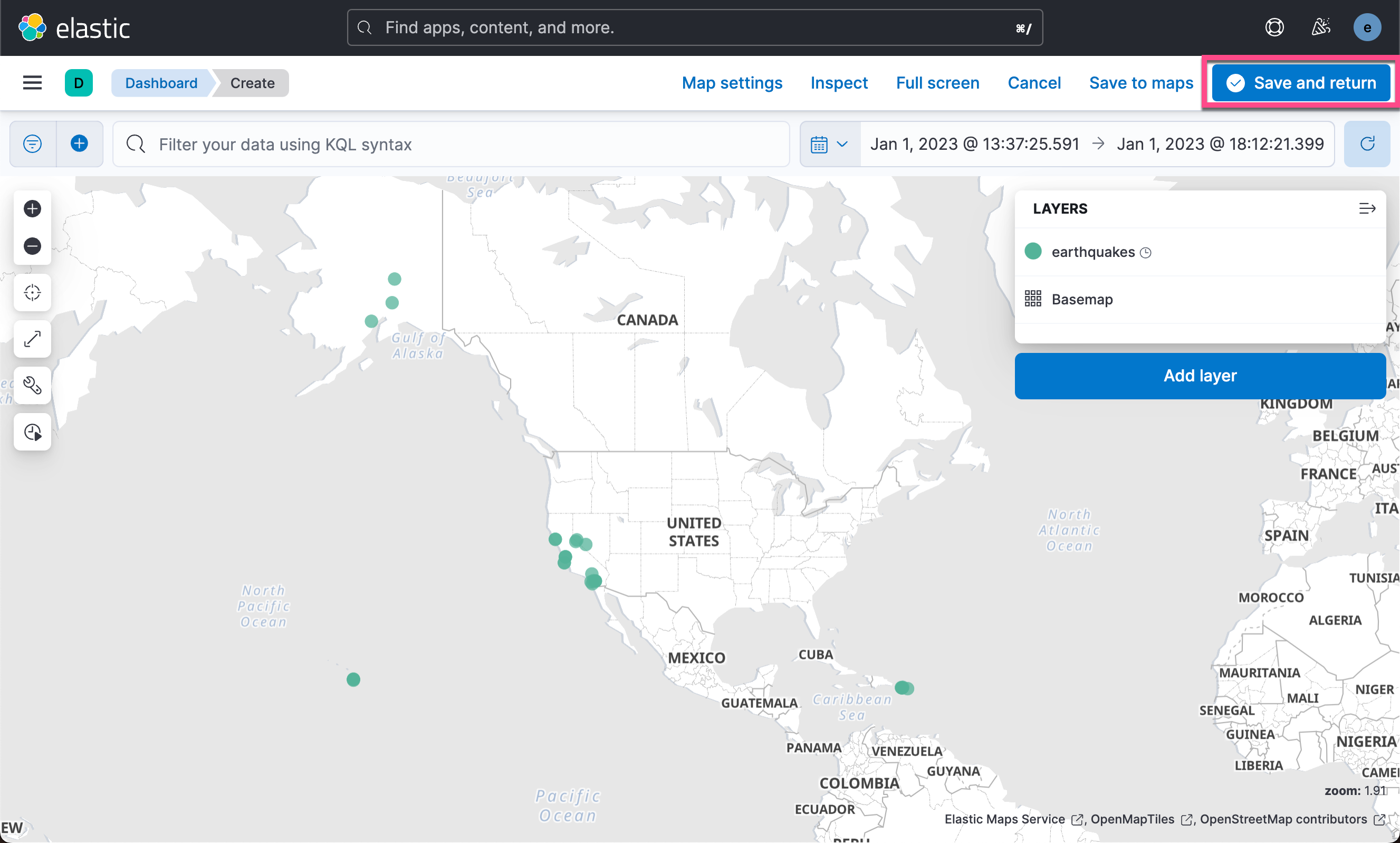 从上面我们可以清楚地看到地震发生的位置。点击上面的 Save & return: