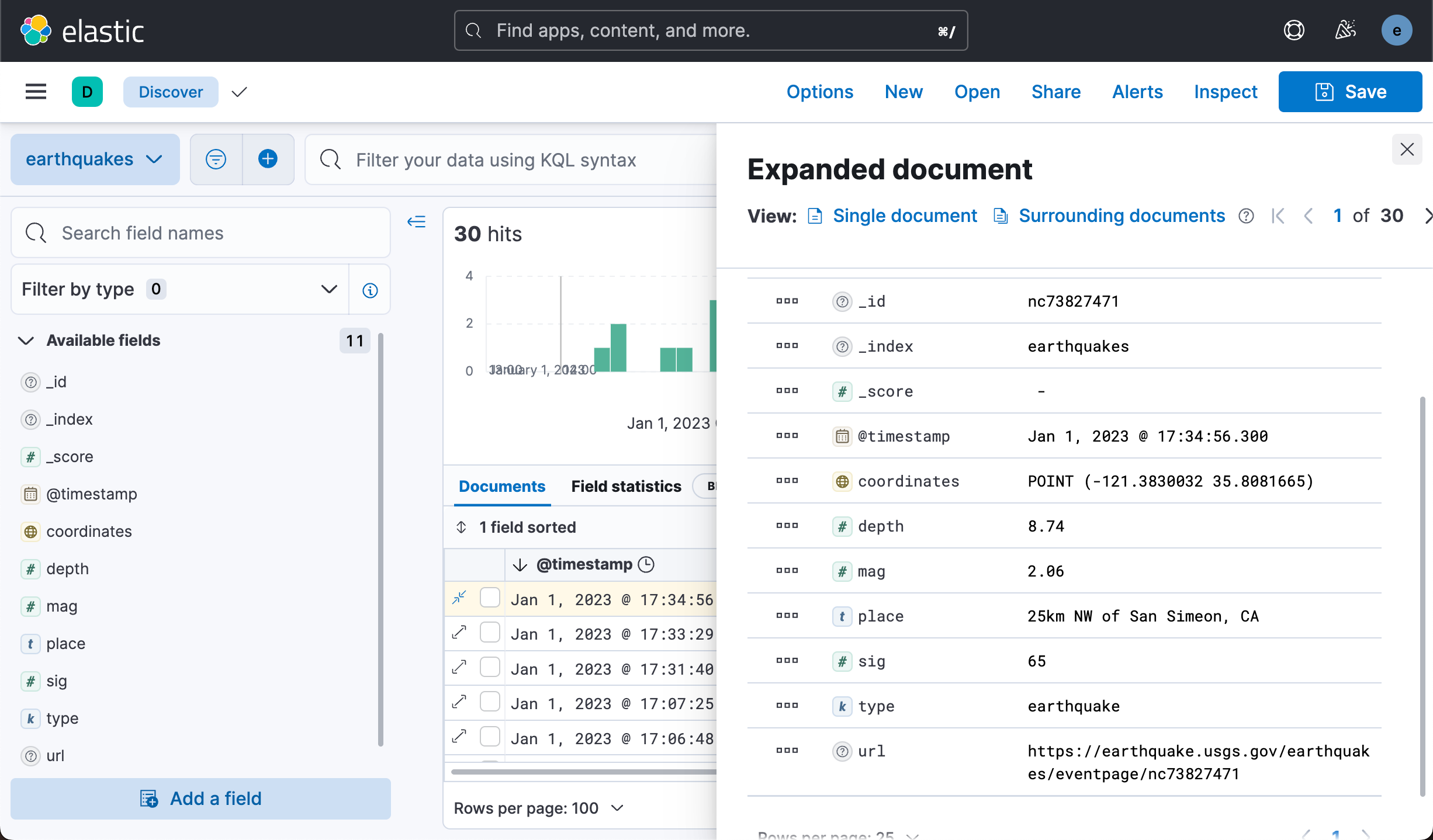 在我的上一篇文章 “Elasticsearch:使用 Node.js 将实时数据提取到 Elasticsearch 中(一)”,我详细描述了如何如何使用 Node.js 来采集地震数据。在今天的文章中,我们来详细描述如何对数据可视化。我们还将创建一个 web 应用来对我们的地震数据进行搜索。