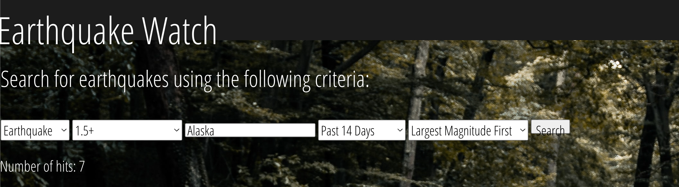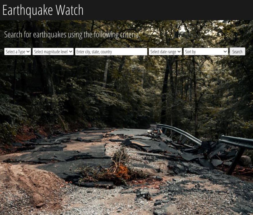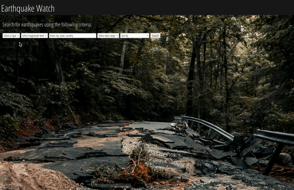 我们的客户端允许用户根据地震类型、震级、位置和日期范围搜索地震。 它还允许用户按数量级的升序或降序对搜索结果进行排序。