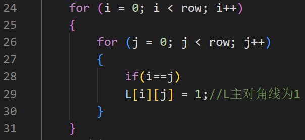 第24~31行:将L主对角元素化为1