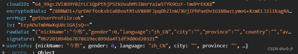 其中 signature = sha1( rawData + session_key ),前端把 signature、rawData传给后端,后端通过相同的方法计算出 signature2,比对 signature 与 signature2 即可校验数据的完整性。