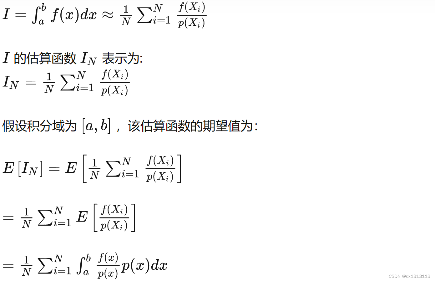 为了求解这个积分,我们在 a到 b上采样 N 个随机样本,将它们加在一起并除以样本总数来取平均。其中