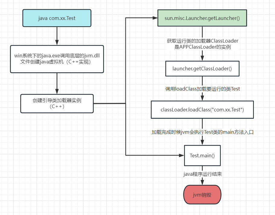 当我们使用java命令运行某个类的main函数启动程序时,首先需要通过类加载器把主类加载到jvm里。