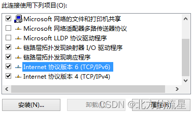 打开PC机的“网络连接”,右键点击“属性”,打开的“属性”窗口中选择Internet协议版本6