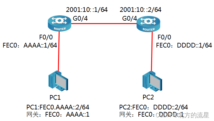 R2_config-_f0/0#ipv6 address fec0:dddd::1/64 // f0/0接口配置IPv6私有地址