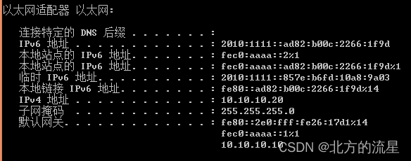 配置完成后,可以在CMD命令行下使用ipconfig命令(Windows 7系统)查看配置的IPv6地址