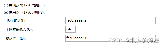 在IPv6地址属性页面中,配置PC机的IPv6地址信息