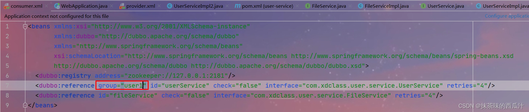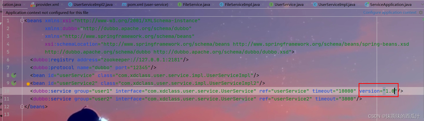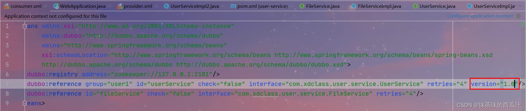 我们提供者如果配置了版本号,那么我们的消费者也需要配置版本号,不然无法正常启动: