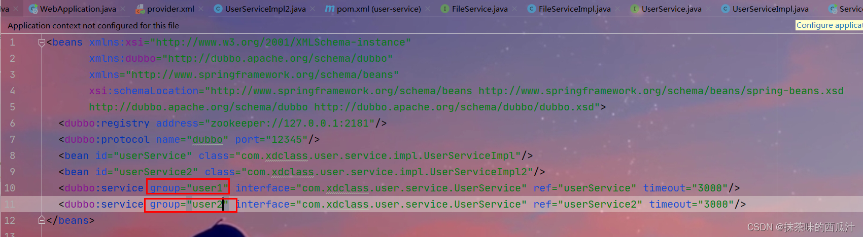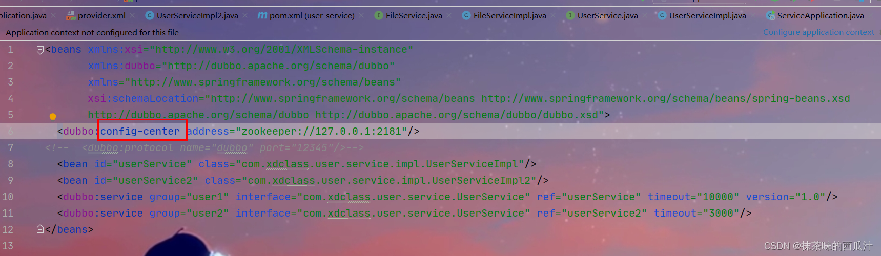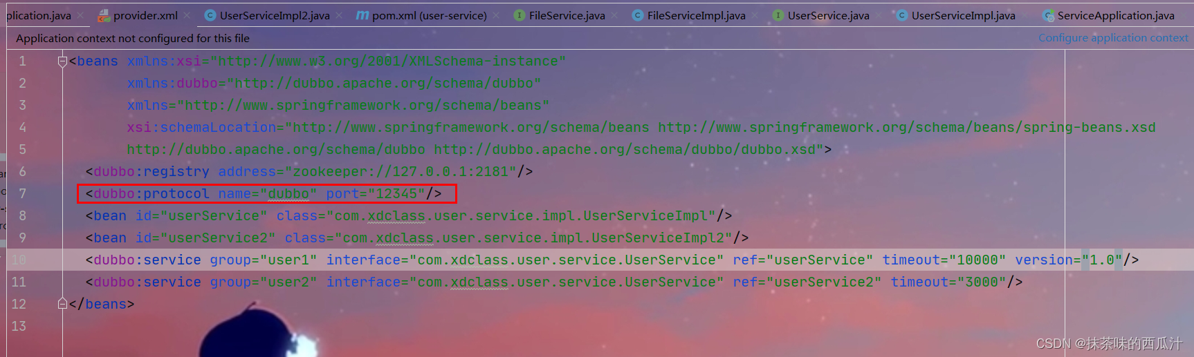 我们之前配置了注册中心地址,那么同样的我们的protocol也可以去进行在外部配置: