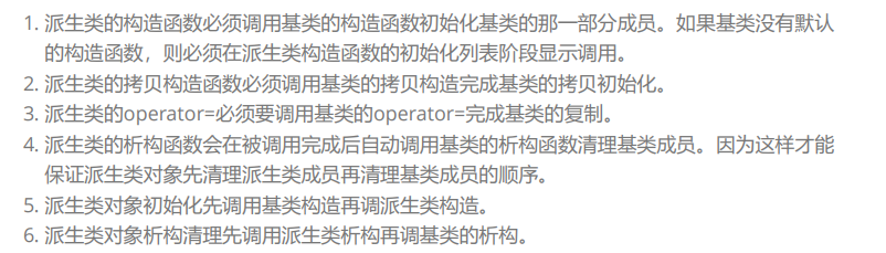 Stu(const char* name,int num):Person(name),_num(num){} Stu(const Stu& s):Person(s),_num(s._num){}拷贝构造也是,需要调用父类的拷贝构造完成父类的拷贝初始化。这里的原理就是2.3的切片,相当于把s这个子类中继承父类的那些东西拷贝给父类。这里印证了2.4的第二点。