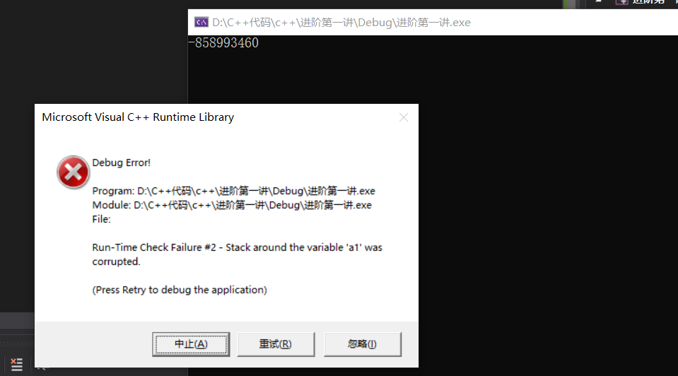 {array a1;int arr[10];cout << a1[11] << endl;a1[11] += 1;